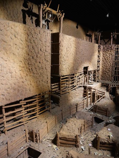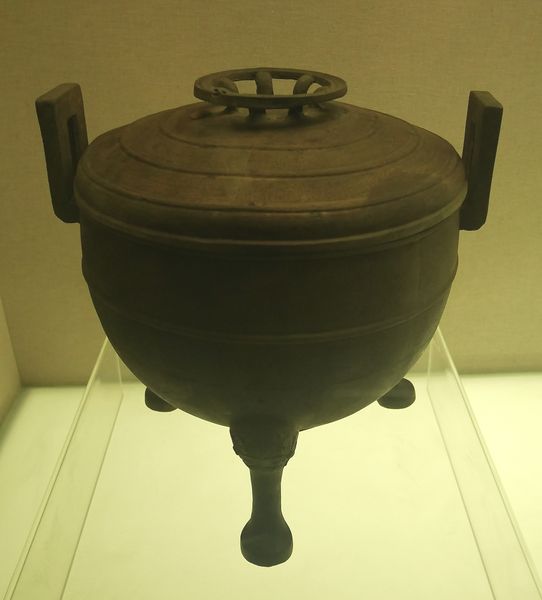 La création artistique chinoise, mis à part les bronzes archaïques, l'art funéraire et la sculpture bouddhique, est marquée par la recherche de la pérennité à travers l'éphémère et le fluctuant. L'archéologie permettra de mettre à jour de nombreux bronzes, lesquels démontreront l'importance du cuivre dans la vie de l'époque. Au sud-ouest de Huangshi, près du lac Daye se trouve la mine de Tonglushan (dont on peut voir une maquette reconstituée ci-dessus) ou du moins les restes de ce qui fut jadis un terrain d'exploitation s'étendant sur 8 km2. Le lieu fut découvert en 1973 et apparaît comme la mine chinoise la mieux conservée à ce jour. On découvrit sur place plus de mille outils. C'est que ces objets en bronze, nombreux dans l'Empire du milieu, furent associés aux rite funéraires dès l'époque Shang. Ils furent, dès les premiers temps de l'âge de bronze, traduits par des objets utilitaires, mais leur forme évoluera plus tard jusqu'à l'apparition par exemple de l'arbalète (ci-dessous) depuis la période des Royaumes combattants. Ces objets exigeaient tous un grand nombre de travailleurs spécialisés, mais aussi artisans, artistes et commanditaires. Il fallait d'abord extraire le minerai, en faire des lingots, puis donner une forme au métal. L'exposition sur la culture Chu permet d'admirer de nombreux objets en bronze, dont des outils, des armes, des objets rituels qui servaient autrefois à la noblesse Chu (comme ce bronze Ding, deuxième photo ci-dessous), mais aussi des miroirs, ou des boucles de ceintures. Cette visite de ce pavillon consacrée à la culture de cet ancien royaume chinois m'aura permis d'aborder une époque historique intéressante de l'histoire de ce grand pays.