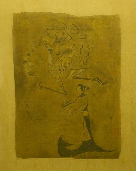 L'artisanat Chu maitrisait parfaitement la couleur et la forme, notamment en ce qui concerne les boiseries des objets laqués, comme ce tambour en photo ci-dessus. Le vernis pigmenté rouge et noir était alors abondamment utilisé. Le tissage atteignit également un haut niveau de savoir-faire et permit entre autres, la création de robes légères. L'exposition me permet d'observer d'anciennes pièces de cette soie qui valait si cher jadis qu'elle était un produit de luxe. La Chine sera d'ailleurs longtemps la seule à détenir son secret de fabrication, et donnera lieu à l'apparition de la fameuse route de la soie, à la fois espace d'échanges commerciaux dès le Paléolithique et héritière de la route de Jade apparue 7000 ans auparavant. Ci-dessous, on peut admirer une peinture sur soie représentant phénix et dragons.