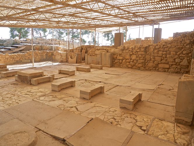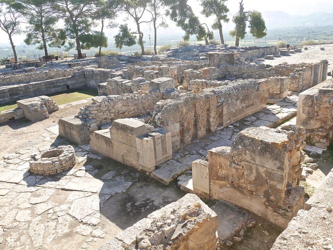 Le site consiste essentiellement en des vestiges d'un palais minoen, l'un des plus anciens du genre. Contrairement à Knossos, où Arthur Evans effectua des restaurations du palais, d'ailleurs parfois discutées, le site archéologique de Phaistos est resté en l'état depuis sa découverte par des archéologues italiens. C'est donc à un véritable champ de pierres que me vais être confronté.