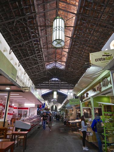 Après être monté sur le bastion Schiavo, j'emprunte les petites rues (ci-dessous) commerçantes pour me rendre jusqu'au marché municipal (deuxième photo). Celui-ci, fut érigé en forme de croix, à la suite d'une session plénière de la marie de la ville qui se tint en juin 1908, et qui décida de la création d'un tel marché couvert. Les travaux débutèrent en 1911, grâce en partie aux matériaux récupérés suite à la démolition d'un bastion vénitien, pour s'achever fin 1913 (date d'inauguration du marché). La halle fut en effet bâtie à l'emplacement du bastion central des fortifications vénitiennes, dont le flanc sud sera entièrement détruit au début du XX ème siècle (comme le montrent des photographies exposées au centre du marché). Durant l'occupation allemande, la partie est-ouest du bâtiment fut réquisitionnée par l'ennemi.