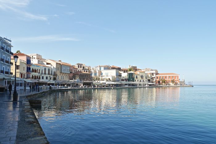 Je quitte à regret mon hôtel de Réthymnon et prends la route pour Chania, celle qu'on appelle aussi Hania, ou La Canée. Cette ville sera la première capitale de la Crète indépendante, et saura préserver son précieux patrimoine, comme sa vieille ville que je vais visiter aujourd’hui et qui est classée depuis 1965. J'ai le plus grand mal à atteindre mon hôtel précisément situé à deux minutes à pied du charmant port vénitien, et il me faudra aller à quinze minutes de marche de là pour trouver une place de parking. Et encore sommes nous hors saison, et je n'ose pas imaginer ce que cela doit être en plein été. Mon hôtel, Le Belmondo (çà ne s'invente pas!) est très bien placé, dans une petite rue pleine de charme. Après m'y être installé, je pars découvrir cette cité aux multiples appellations, qui s'appelait jadis, Kydonia, au temps de la civilisation minoenne. Elle deviendra une cité-Etat pendant la période de la Grèce classique, dont les limites s'étendaient depuis la baie de La Canée jusqu'au pied des Montagnes blanches. Autrefois, Kydonia était en guerre perpétuelle avec d'autres cités-Etats comme Aptera (cité en ruines sur la colline de Paliokastro) , Falasarna, Polyrrinia ou Egine. La cité avait une telle importance qu'elle fut mentionnée dans l'Odyssée d'Homère. D'après une version arcadienne, le nom originel de Kydonia proviendrait de Cydon, ou Kydon, fils de Tégéatès, roi d'Arcadie, qui, tout enfant, vint en Crète et fonda Kydonia (Cydonia). Selon une autre version, crétoise celle-là, le même enfant serait celui d'Acacallis (fille de Minos) et d'Hermès (devenu entre temps Apollon). Quoiqu'il en soit, en 69 avant J.C, le consul romain Metellus défaira les Crétois et conquerra Kydonia à qui il accordera les privilèges d'une cité-Etat indépendante. La cité aura ainsi le droit de frapper sa propre monnaie, jusqu'au III ème siècle après J .C.