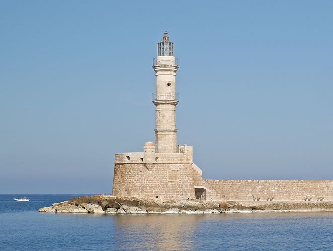 Ma promenade débute par la visite du port vénitien (ci-dessous), avec ses quais pavés et ses lignes majestueuses. Ce port fut aménagé à partir du XIV ème siècle par les Vénitiens et se déploiera avec grâce, en arc de cercle, en s'intégrant entre les fortifications. J'admire au passage les jolies façades des maisons (deuxième photo). Je suis soudainement interpellé en français par un homme qui me demande de quelle région je viens. Il a aperçu mes petits drapeaux sur mon sac à dos. Je lui explique que je suis breton. Lui, m'avoue être marseillais, et travailler dans un restaurant donnant sur le port. Comme quoi, on fait parfois des rencontres inattendues à plusieurs milliers de kilomètres de là. Je passe devant le Musée maritime de Crète, que je visiterai un autre jour puis me retourne sur la phare du port (troisième photo). Ce sont les Vénitiens qui le construisirent entre 1595 et 1601. Le phare repose sur un fond rocheux et sa lumière fonctionne par éclats. Joyau reconnu de la ville, il mesure 21 mètres de haut (soit 26 mètres au-dessus du niveau de la mer) et son rayon lumineux est visible jusqu'à 7 miles.