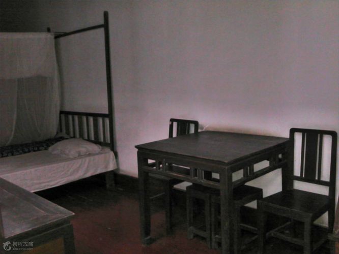 La chambre, elle, est meublée dans le style des années cinquante, avec une chaise à motifs blanc et rose. Juste à côté du grand lit est suspendu le peignoir de bain à rayures blanches et bleues qu'utilisait Mao. On peut même encore apercevoir ses sandales ainsi que celles de son épouse Jiang Qing.