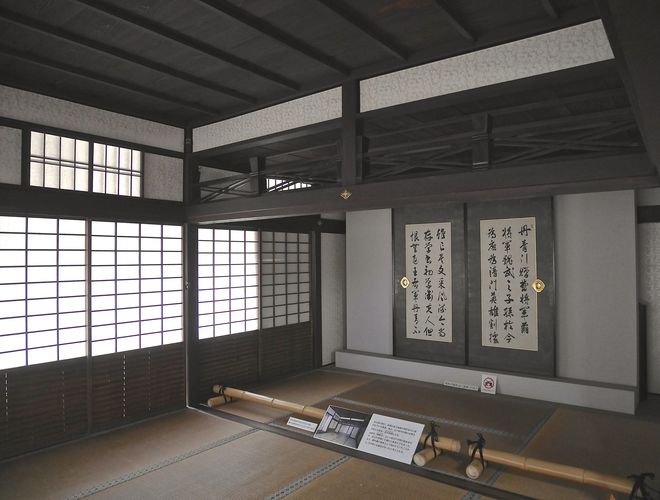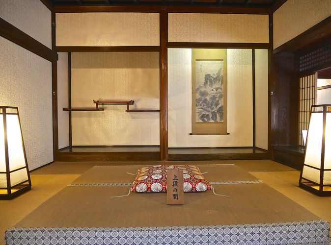 A l'intérieur, existe un certain nombre de pièces, comme par exemple le tatami-rouka qui était le lieu de passage permettant aux hôtes de se rendre du hall d'entrée de la honjin au Jyodannoma (troisième photo ci-dessous), la pièce la plus prestigieuse de l'établissement. Une autre pièce, petite celle-là, servait à la préparation du thé qui était ensuite servi au daïmio, et portait le nom de Daisunoma.