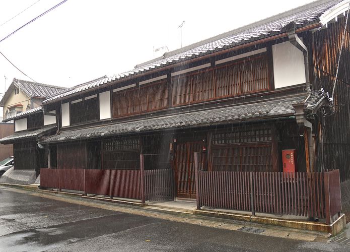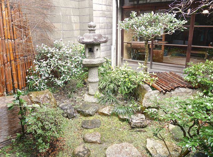 A cinquante mètres du musée, je découvre une ancienne librairie datant de la période Meiji (ci-dessous) appelée Hyakuchokan. Le plan actuel de cette demeure remonte à 1900 et c'est à Monsieur Tatsujiro Imai que nous le devons. Ce document spécifiait en autre de ne jamais planter dans le petit jardin (deuxième photo) un arbre à fleurs rouges car cela pourrait nuire à la prospérité du commerce. Au contraire, les plantes à fleurs blanches, elles, apporteraient la bonne fortune. Du côté de la cuisine, on trouvait cinq cuisinières portant les doux noms de Jigashimuki, Go, Kawa, Dai et Kichi, qui signifiaient respectivement « orienté à l'Est », « cinq », « rivière », « grand » et «chance ». Deux petits magasins attenants à la maison se dressaient dans la partie nord de cette dernière. A l'origine, Machiya était une maison d'habitation urbaine apparue à Kyoto, au milieu de la période Edo. Ses caractéristiques : une charpente traditionnelle en bois avec de solides piliers intérieurs et extérieurs, alignement avec les maisons voisines et façade donnant sur la rue, toit de tuiles, larges portes d'entrée, treillis et mur en boue.