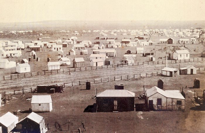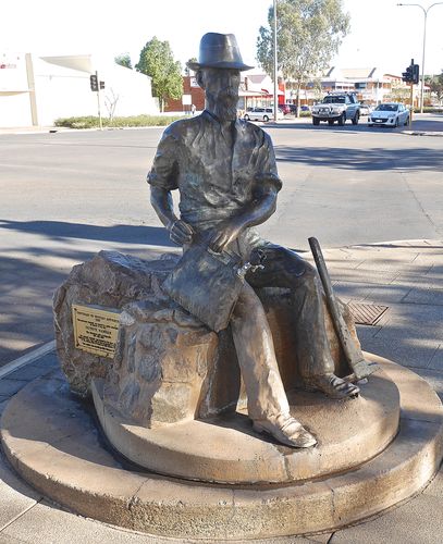 Tout commença en janvier 1893 lorsque trois Irlandais, Patrick Hannan (dont on peut voir sa statue à Kalgoorli-Boulder, ci-dessus), Tom Flanagan et Dan O'Shea se rendirent au Mont Youle et qu'un cheval perdit un fer. Lors de leur halte, les trois hommes trouvèrent des signes encourageant quant à la présence d'or dans la région et décidèrent de s'y poser un peu. Le 17 juin de la même année, Paddy mit la main sur cent onces d'or et attira ainsi une foule de chercheurs d'or sur place. Kalgoorlie (qui s’appellera d'ailleurs Hannan au départ) était née. On comptait alors 2000 âmes dans la petite ville en 1898, et le lieu, qui n'a depuis cessé de prospecter non seulement l'or mais également le nickel et autres minerais, a bien grandi, d'autant plus qu'en 1896, le rail était arrivé jusqu'à Kalgoorlie, révolutionnant ainsi les moyens de transports, pour le meilleur et pour le pire.