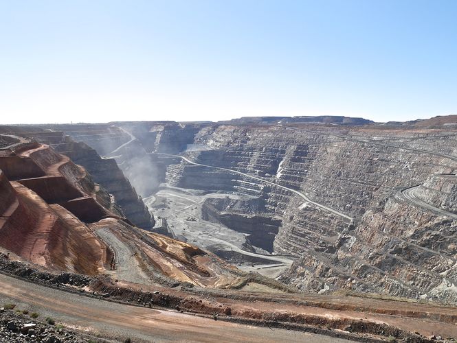 Durant les années 1980, un certain Alan Bond commencera à racheter les titres de propriété de petits propriétaires afin de bâtir une grosse société minière et d'extraire ainsi l'or à un coût moindre. Mais il apparaitra bientôt que les gisements souterrains coutaient les yeux de la tête en frais d'exploitation et que seuls les puits à ciel ouvert devenaient rentables. Alan Bond n'aura pas bouclé son projet mais, en 1989, la Kalgoorlie Consolidated Gold Mines Pty Ltd sera créée dans le but de fédérer à la fois les investisseurs et les moyens de prospection. Le Super Pit (ou puits géant) va ainsi prendre le relais (ci-dessus) : 3,5 kms de long, 1,5 km de large et 570 mètres de profondeur correspondent plus ou moins aux mensurations de ce gisement extraordinairement grand, que je vais découvrir une fois arrivé au point d'observation du chantier. Ce gisement est pour moitié la propriété de la société minière citée précédemment, et pour moitié celle de Barrick Gold Corporation et de Newmont Mining Corporation. Celui-ci produit annuellement 28 tonnes d'or (soit 850 000 onces) et emploie 550 employés travaillant directement sur le site. A noter que, depuis sa découverte, ce site a permis d'extraire pour environ 50 millions d'onces d'or !