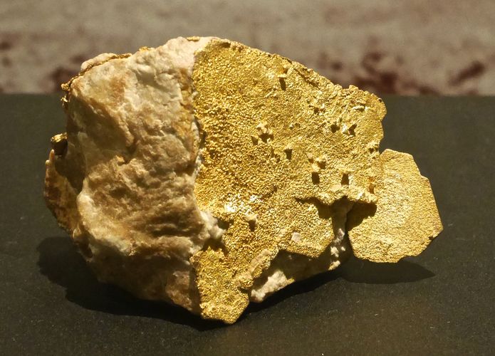 Je ne rentrerai pas dans les détails de l'extraction et de la production de l'or. D'autres vous raconteraient cela mieux que moi. Je décide de me rendre au musée de l'Ouest australien (Western Australia museum) qui se trouve sur la rue Hannan (baptisé ainsi en l'honneur du découvreur d'or Paddy Hannan!). Ce musée est essentiellement consacré à la culture aborigène et à l'histoire des gisements aurifères de la région Est. Outre les différentes salles, un endroit me laissera songeur, sans doute parce que cette salle contient presque cinq millions de dollars en or, le Gold Vault (la voûte dorée). Protégée par deux grandes portes blindées, la salle offre d'admirer des pépites d'or (ci-dessous) et différents autres objets qui sont en relation avec la prospection minière, comme par exemple ce sac ayant servi jadis à transporter les pépites d'or (deuxième photo). Je n'ai jamais approché de si près la prospérité...