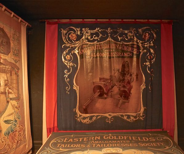 Dans un autre bâtiment, je découvrirai quatre immenses bannières qui appartiennent à des corporations syndicales. Le syndicat des boulangers a la sienne, celui des ingénieurs, et des charpentiers également (ci-dessous). Non loin de là se dresse un autre édifice qui aborde la vie de Claude Albo de Bernales (ci dessous sur la deuxième photo). Cet homme né en 1876 fera fortune grâce à l'or, en partant de rien. Venu de Londres en 1897, à l'âge de 21 ans, et avec juste 5 livres en poche, il travaillera d'abord comme employé pour la société Davis Machinery, société qu'il rachètera plus tard. Il épousera une fille riche, une certaine Elizabeth Picken Berry, en 1903. Celle-ci dirigeait avec ses frères la fonderie de Kalgoorlie. Le couple aura trois enfants, mais Elizabeth décédera en 1927, et Claude de se remarier avec Helen Florence Berry trois ans plus tard. Le talent de cet homme fut de racheter les concessions de mines d'or à leurs propriétaires en passant avec eux un contrat d'échange de bons procédés, en leur fournissant notamment les matériels dont ces propriétaires ne disposaient pas, grâce à la société Davis Machinery. L'idée était astucieuse et cette activité lui rapportera plusieurs millions de livres. Puis Claude Albo de Bernales s'en retourna à Londres et à Paris afin de convaincre les investisseurs d'investir dans l'or. Notre homme avait vu juste car, en 1931, suite à la débâcle boursière, l'or atteignit effectivement des sommets, étant devenu la valeur refuge du moment. Ces mêmes mines d'or aideront d'ailleurs l'Ouest australien à affronter la crise économique d'alors. Et Claude de repartir pour Londres en 1936. C'est à ce moment-là qu'il fut victime d'allégations de corruption sur ses compagnies et que le London Stock Exchange suspendit la cotation de ses transactions dès 1939. Corruption réelle ou méchanceté gratuite, on l'ignore. Ce qu'on sait, c'est que Claude Albo de Bernales ne sera jamais déféré devant un tribunal faute de preuves, malgré une longue enquête. Malheureusement pour lui, il sera contraint de liquider ses sociétés durant les années 1940, retournera vivre dans l'Ouest australien en 1958, avant de décéder en 1963.