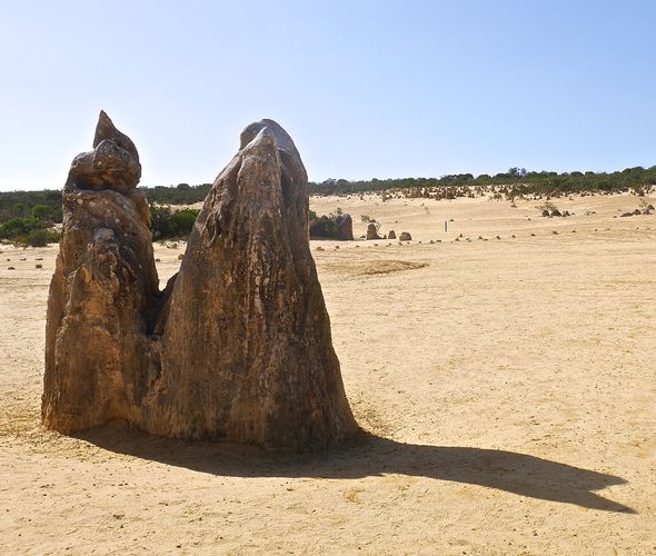 Ces aiguilles de rochers usées par le temps qui pointent vers le ciel sont composées de coquillages et datent de plusieurs millions d'années, à l'époque où ce sable se trouvait encore sous la mer. Je ne trouverai pas d'autres explications à cette formation géologique, à moins peut être de lire l'intégralité des textes de présentation du centre d'exposition consacrés aux Pinacles, près de la boutique de souvenirs. On y découvre certes le parc de Nambung, sa faune et sa flore, et les Pinacles qui restent, bien sûr, la principale attraction du parc. On pense que ces pierres proviennent probablement de dépôts marins d'organismes comme les coraux et les mollusques. Les pierres ont des formes différentes, ressemblant pour certaines d'entre elles à des sculptures. Ou à des pierres tombales.
