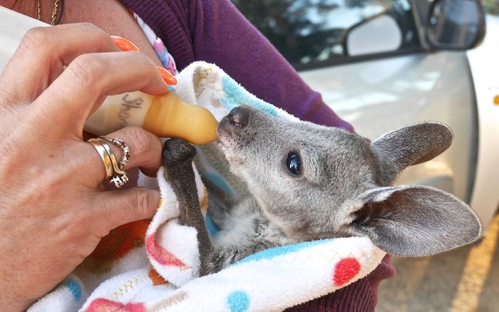Je rebrousse chemin pour prendre la direction de Badgingarra, un tout petit village rural comme les Australiens savent les concevoir. J'y trouverai le minimum (mais l'essentiel) pour ma prochaine nuit, à savoir un point d'ancrage situé près de la station-service. La nuit tombe tôt ici et, dès le coucher du soleil, j'assisterai à l'éveil des perroquets pratiquant l'art de la conversation dans un brouhaha saisissant. De passage à la station-service, je tomberai par le plus grand des hasards sur Dave et Gail qui s'occupent d'un orphelinat pour kangourous, à Paynes Find, dans l'Outback. Tous deux tiennent chacun un bébé kangourou dans les bras. Ces animaux ont été récupérés suite à la disparition des parents écrasés par des véhicules. Nous avons décidé de nous revoir.