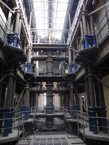 Aujourd'hui musée du patrimoine historique, le célèbre Palais se dresse toujours dans le quartier de Balvanera, délimité par les rues Avenida Cordoba, Calle Ayacucho, Viamonte et Riobamba. Bâti de 1887 à 1894, l'édifice offre l'une des plus belles architectures portègnes, avec sa forme rectangulaire, d'où son nom de palais. L'emplacement surélevé, mais aussi la nature du sol firent que le réservoir d'eau soit érigé à cet endroit. D'une hauteur de 21 mètres, le palais possède des parois qui atteignent 1,80 mètre d'épaisseur au rez-de-chaussée. Carré d'environ 90 mètres de côté, assorti de volumes dans les quatre coins qui se passent d'angles, et des balcons mettant en exergue les accès situés au centre de chaque façade. L'édifice qui forme une coque, dispose d'une cour centrale, carrée elle aussi (de 17 mètres de côté) et conçue pour apporter à l'ensemble lumière et ventilation. La partie inférieure de ce patio comporte des ouvertures avec des vitraux ornés du blason national et du sigle de l'institution Obras Sanitarias de la Nacion. A l'intérieur, on compte pas moins de 180 colonnes distantes de six mètres et disposées en damier qui constituent la structure de soutien des douze grands réservoirs (ci-dessous) situés sur les trois étages du bâtiment, et qui offrent au total une contenance de plus de 72000 m3 (ou 72 millions de litres) d'eau potable. Une fois les réservoirs remplis, le poids total de l'ensemble atteignait les 135000 tonnes, ce qui donne une idée du gigantisme de cette construction pour l'époque. Les réservoirs de l'étage supérieur sont dissimulés derrière la mansarde tandis que ceux de l'étage inférieur furent démantelés en 1915, lors de la construction d'un autre grand réservoir dans le quartier de Caballito. Pour la petite histoire, il fut un temps question d'installer des bains de natation entre la base des réservoir du palais et le rez-de-chaussée afin de profiter du grand volume dispoinble mais l'idée sera abandonnée pour des raisons budgétaires. L'endroit recevra à la place une usine de dalles et divers services de maintenance des réseaux d'eau, jusqu'à l'arrivée des bureaux actuels, à la fin des années 1920.
