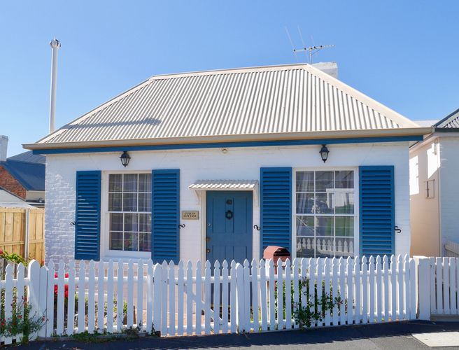 Le quartier de Battery Point tire son nom de l'installation d'une batterie d'artillerie au sommet de la colline en 1818, batterie qui faisait partie des défenses militaires de l'endroit. Inutile de chercher sa trace, elle a disparu depuis belle lurette. En revanche, de jolis cottages (ci-dessous) survivent admirablement au temps sur la place Arthur Circus. Ces maisons furent construites en arc de cercle autour de cette petite place pour abriter les officiers de garnisons, au tout début de l'occupation européenne. A noter que la Place Arthur Circus est unique en son genre en Australie. Non loin de là se dresse l'église anglicane Saint Georges, bâtie par l'architecte John Lee Archer.