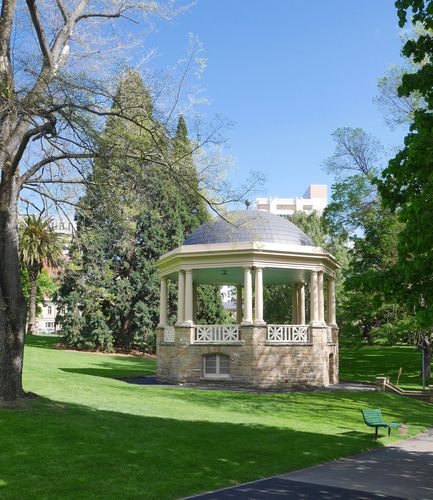 Poursuivant ma promenade le long de Hampden Road, je prends à droite au carrefour pour m'engager dans Sandy Bay Road. A cinq minutes de marche, se trouve St David's Park (ci-dessous) qui fut autrefois le premier cimetière de la ville. L'endroit sera transformé en parc en 1926 mais on peut toujours y observer d'immenses arbres et quelques tombes datant du début de la colonisation européenne. Une fois traversé le parc, je tombe en arrêt devant une magnifique maison qui s'avère être le Club Athenaeum (deuxième photo), sur Davey Street. Ce club très chic est réservé aux hommes dans la pure tradition britannique depuis 1889.