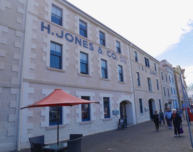 Il avait suffit que des hommes comme William Bunster construisent des entrepôts vingt ans auparavant pour que l'activité économique prenne de l'ampleur. Aux N° 31 à 33 de la rue Hunter, William Bunster faisait le commerce de la soie depuis l'île de Macquarie et celui du sel et des peaux de phoques depuis l'île Kangourou. Cette activité florissante permettra à notre homme, qui était parti de rien, de racheter bientôt le N°35 de la rue ainsi que d'autres propriétés. Entre 1869 et 1882, un certain George Peacock prendra le relais en faisant l'acquisition des N° 27 à 33 de cette rue. Fabricant de confitures, il mènera son entreprise de main de maitre, imposant à son personnel prières du matin, hymnes et sermons et abstinence d'alcool, jusqu'en 1892, date à laquelle son entreprise sera renflouée par son fils et quelques employés dont le plus célèbre, Henry Jones. La confiture collait bien avec ce personnage et Henry, qui avait commencé à travailler dès l'âge de 13 ans, de s'atteler à la tâche et de gagner beaucoup d'argent. Il atteindra son apogée dans les années 1920, avec sa grande usine moderne, et innovante pour l'époque, qui accueillait en haute saison jusqu'à 1100 employés. Et les confitures d'être exportées depuis la jetée Ocean Pier vers le monde entier. De naturel optimiste, battant et bosseur, Henry Jones s'imposera la même discipline que celle qu'il demandait à son personnel, en étant juste et équitable. Bon gestionnaire, il contrôlait toute la chaine de production, de A à Z. Et se fera une réputation bien au-delà de la Tasmanie. Sa réussite sera célébrée en 1919 en signe de reconnaissance pour ce qu'il avait fait pour l'île. Il mourra en 1926. La société Elders prendra le relais en 1973 jusqu'à ce que les entrepôts ne soient rachetés par le gouvernement quatre ans plus tard. Aujourd'hui, se dresse le Henry Jones Art Hotel (ci-dessous) comme un clin d'oeil à la performance d'un homme peu commun.