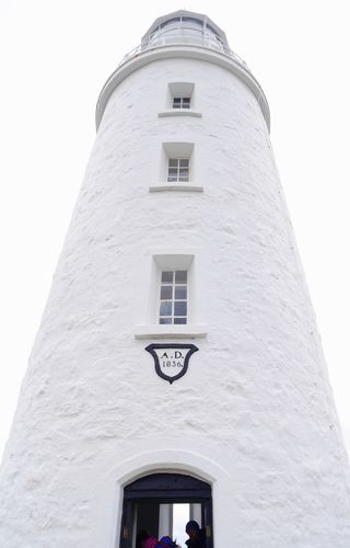 Je traverserai successivement les localités de Alonnah, puis de Lunawanna, avant de prendre la direction du phare du cap Bruny. Il me faudra 45 minutes en roulant au pas pour atteindre l'extrême sud de l'île. Après Lunawanna, lorsqu'on prend la direction du cap Bruny, on s'engage rapidement sur une piste mentionnée comme glissante. Soyez prudent et ne dépassez pas les 20 km/heure à cet endroit, car vous finiriez dans le décor. Cette portion de piste très glissante s'achève au bout d'un kilomètre. Je pénètre ensuite dans le parc national du sud de l'île Bruny et suis invité à m'acquitter d'un droit d'entrée (infos pratiques). Personne ne me surveille et je pourrais très bien ne rien payer du tout mais cet argent sert à entretenir les parcs nationaux. Ce parc offre quelques points de vue superbes indiqués en bord de route (ci-dessous), avant d'atteindre le phare (deuxième photo). Cette construction est le second plus ancien phare d'Australie, avec ses 158 années d'existence (il fut allumé pour la première fois en 1838, et ce, jusqu'en 1996). C'est le gouverneur George Arthur qui aura l'idée de l'ériger dès 1835 alors que survenaient régulièrement des naufrages à l'entrée du canal d'Entrecasteaux. Il faudra deux années aux bagnards pour bâtir l'édifice dont les plans seront conçus par l'architecte John Lee Archer, et on utilisera de la dolérite extraite dans les alentours. Au départ, on utilisait de l'huile de baleine pour éclairer la lanterne du phare, et bien que le faisceau lumineux (alimenté par une quinzaine de lampes) était visible sur un rayon de 30 miles nautiques celle-ci consommait tout de même une pint d'huile par heure, et on la remplaça bientôt par l'huile de colza. La lentille de Wilkins sera plus tard elle aussi remplacée par celle des Chance Brothers qui fonctionnera au kérosène et au courant 110vols, avant d'être équipée dès 1984 en 240 volts. Désormais, un autre faisceau lumineux a pris le relais de ce phare, juché au sommet d'une colline voisine et alimenté en énergie solaire.