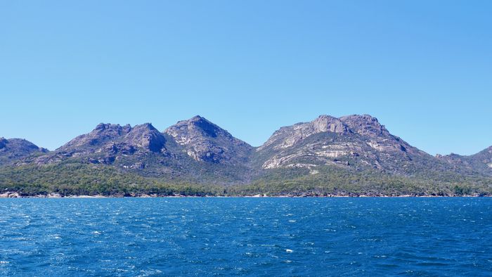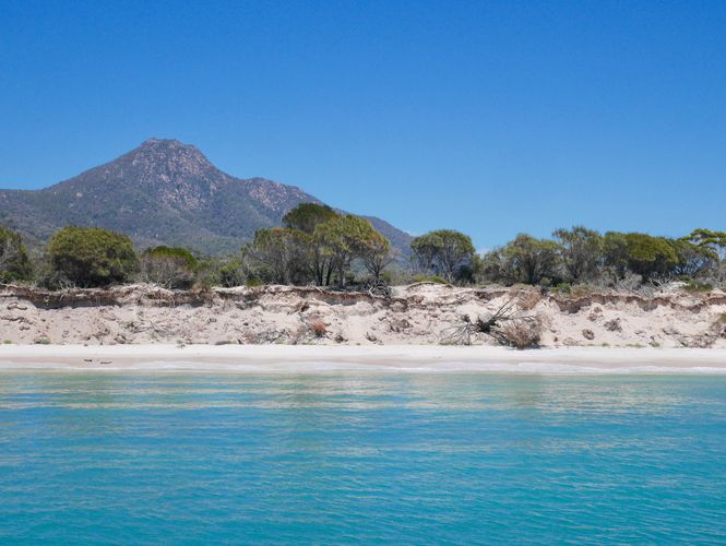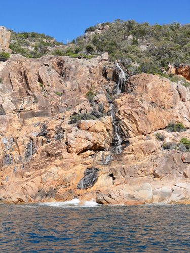Notre périple débutera face à la chaine de montagnes Hazard (ci-dessous), puis nous longerons la plage Hazards, avant de contourner le parc national, de passer à Waterfall Cove (deuxième photo), puis à Wineglass Bay et Sleepy Bay (troisième photo), avant de reprendre le chemin du retour. Les commentaires en anglais seront nombreux lors de cette croisière et nous nous arrêterons à plusieurs reprises pour observer par exemple l'aigle de mer à ventre blanc, les oiseaux marins, les grottes (quatrième photo ci-dessous), les chutes d'eau, et les phoques.