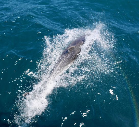 Le bateau repartira un peu plus au large dans l'espoir de retrouver les trois baleines qu'il avait rencontrées hier, mais en vain. Nous devrons nous contenter des gentils dauphins (ci-dessous) venant à notre rencontre ainsi que des phoques. A l'heure du déjeuner, nous mouillerons dans une baie face à une longue plage de sable blanc (deuxième photo) et l'équipage nous servira un repas bento, vous savez ce repas complet logé dans une boite en bois, comme au Japon. Tout était vraiment délicieux, et les produits étaient tous issus de Tasmanie et de la production locale (saumon fumé, fromage...). Un bar est bien sûr à la disposition des clients qui désirent une boisson. Déjeuner face à la plage, un moment idyllique !